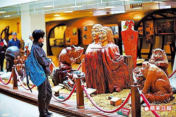 遊客中心內展示的漂流木作品造型、主題各異其趣。
